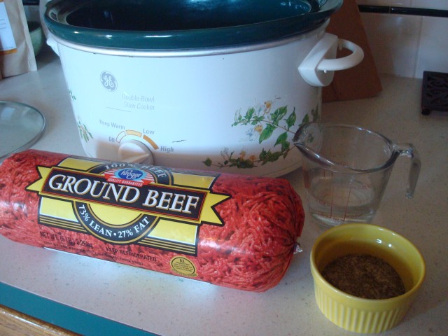 31 Days of Progress Day 3 :: Bulk Cooking Ground Beef in the Crock Pot with Seasoning Recipe